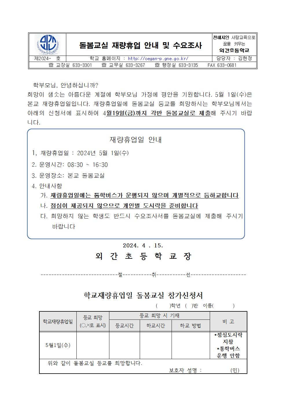 2024학년도 돌봄교실 재량휴업일 수요조사 가정통신문.hwp