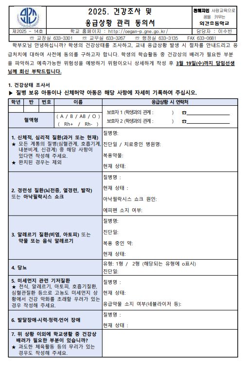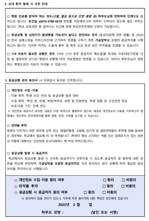 2025. 건강조사 및 응급상황 관리 동의서